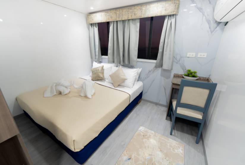 The M/C Galapagos Anahi is a Power Catamaran boat built in Guayaquil, Ecuador in 2006 taking into account the highest standards of first and comfort. She offers comfortable accommodations in 6 twin bed cabins (14 m2 / 151 square feet, each) located in the main deck and 2 suite cabins (18 m2 / 193 square feet. each) located in the upper deck. All cabins feature private facilities, locker and closet, air conditioned. Additionally the yacht has ample resting areas, sundeck, library, TV-DVD room, comfortable dinning room, bar and lounge and Jacuzzi.